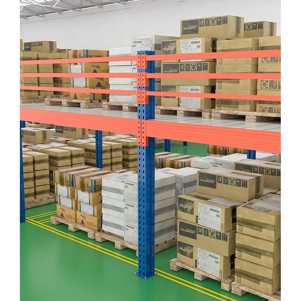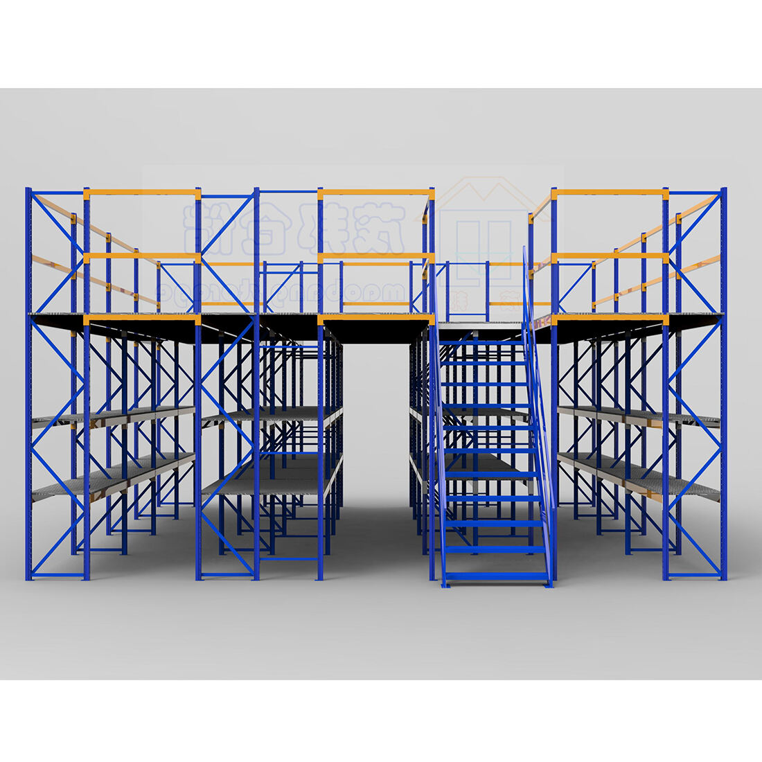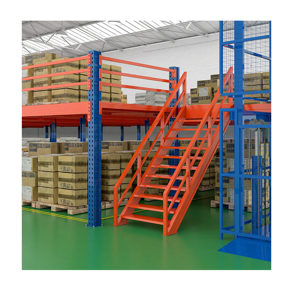Gudang peralatan penyimpanan industri dengan lantai mezzanine dan rak logam, di mana lantai mezzanine yang didukung oleh tiang tegak merupakan tipe ekonomis dalam sistem rak heavy duty. Sistem ini digunakan untuk memenuhi kebutuhan ruang lantai tambahan di gudang atau toko Anda. Keuntungan lain termasuk pemanfaatan rangka penopang rak atau tiang tegak, menciptakan ruang penyimpanan tambahan di atas level mezzanine.