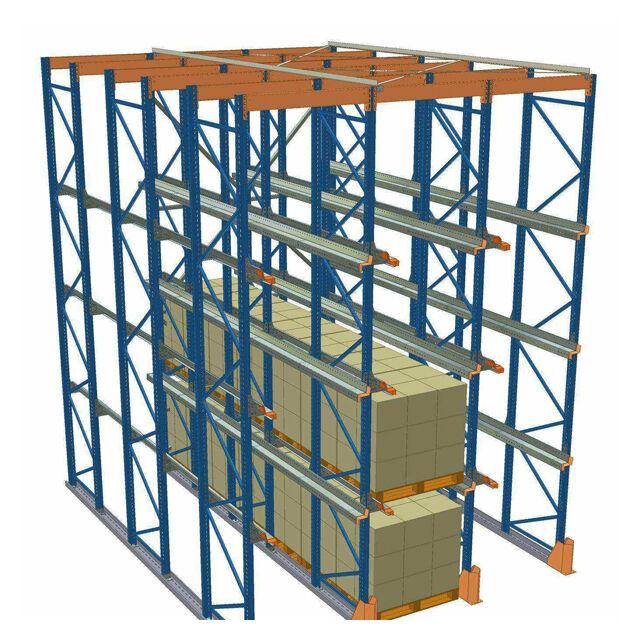 - அதிக அடர்த்தி மற்றும் கனமான சுமைக்கு ஏற்றது: இது டிரைவ்-இன் ரேக்கிங் முறையின் அதிக இடப் பயன்பாடு போன்ற நன்மைகளை பராமரிக்கிறது, மேலும் கனமான பொருட்களை சேமிப்பதற்கான சிக்கலையும் தீர்க்கிறது; இது தொழில்துறை தரத்திலான களஞ்சியங்களுக்கு ஏற்றது.