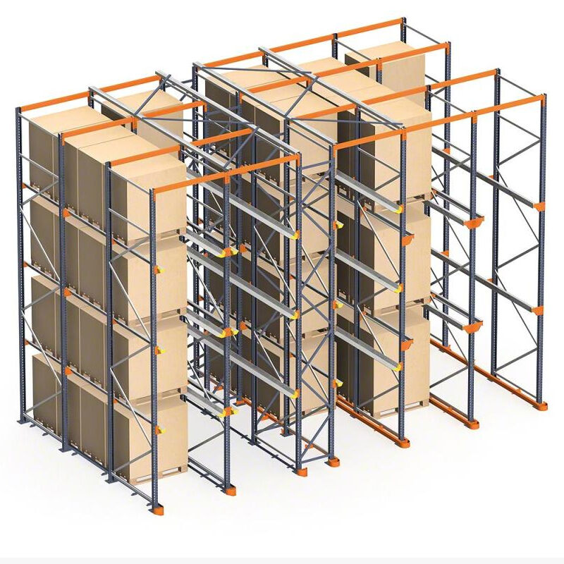 ความหนาแน่นสูง + การหมุนเวียนสินค้าอย่างมีประสิทธิภาพ: รักษาการใช้พื้นที่จัดเก็บอย่างมีประสิทธิภาพสูงไว้เหมือนชั้นวางแบบเข้า-ออก (drive-in racking) และตอบสนองความต้องการในการหมุนเวียนสินค้าอย่างรวดเร็ว โดยสมดุลระหว่างความสามารถในการจัดเก็บกับประสิทธิภาพการปฏิบัติงาน